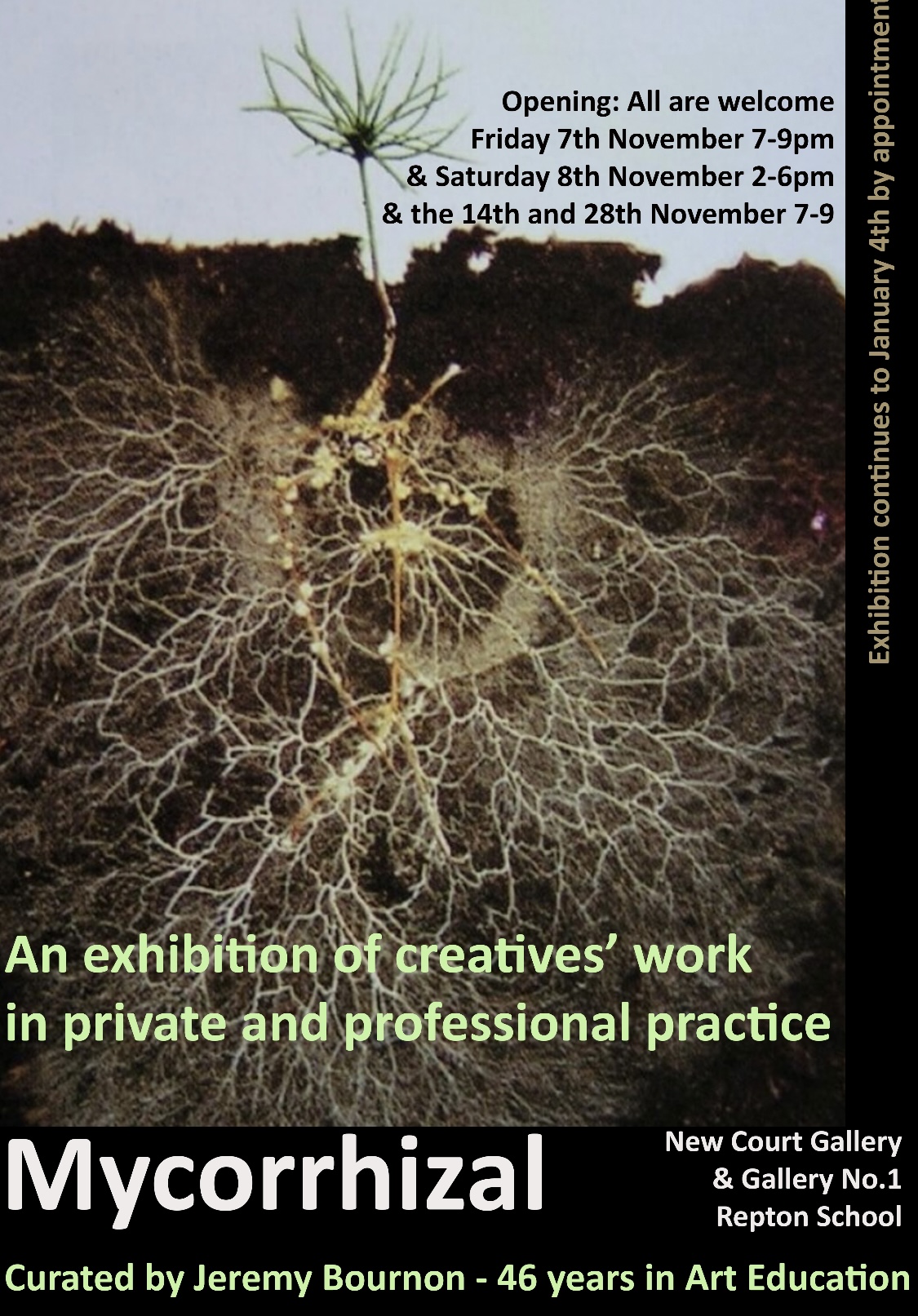 We are invited to visit an exhibition curated by friend of Derby Sketching Club Jeremy Bournon. He describes it as follows: “An exhibition of private and professional creative practice. Mycorrhizal Fungus is a beneficial soil fungus that forms a symbiotic relationship with tree root systems. It improves drought and disease resistance of roots in soils and supports growth to nurture plant and tree life. I thought that was the perfect metaphor for people in education and particularly summarises my time teaching art over 46 years. For this exhibition I have invited creatives from the 5 schools in which I have taught to provide a piece of their own artwork or work from their professional practice. Art works on display will include architectural design, product design, fashion, scientific models, ceramics, painting, photography, sound installation, writing, music and sculpture”.