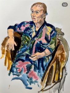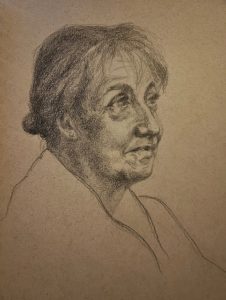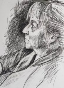 Yours truly sat for the Portrait session on 25 February. The most lovely, relaxing morning I’ve had for a long time! Thank you to Denise and Colin for looking after my comforts and well done to all the artists down my end of the hall, tackling this poor old face.